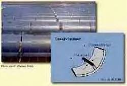 The sun's energy is concentrated by parabolic (curved) trough-shaped